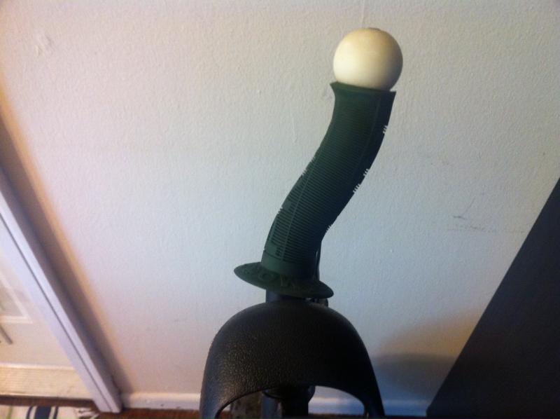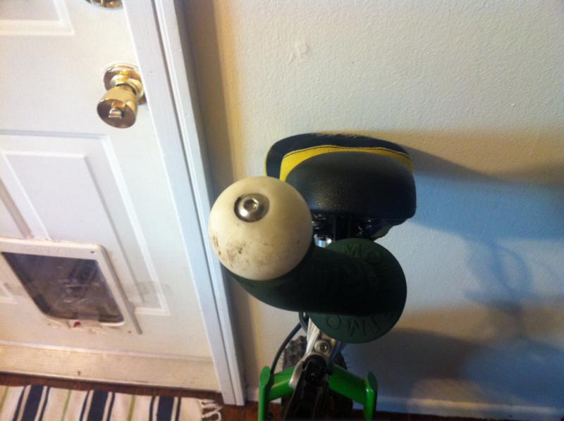 I needed to post my handle, brycer1968 made it for me, it’s a curved bar (to the right, I hold my handle with my left hand, mostly) with a delrin ball end. The handle fits into the existing KH handle mount on the seat. There are a few advantages to doing it this way as opposed to bar ends.