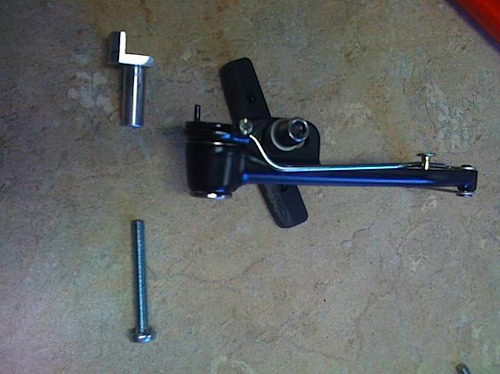 jtrops, this is a GREAT idea! I need a new brake on my KH Geared 36. I am not happy with maguras (I gave them a try again), and I previously was using a regular old kid’s cable brake. I started machining a simple tube to go with an approach like what you did, but I think I may restart and make a single bracket thing that works better.