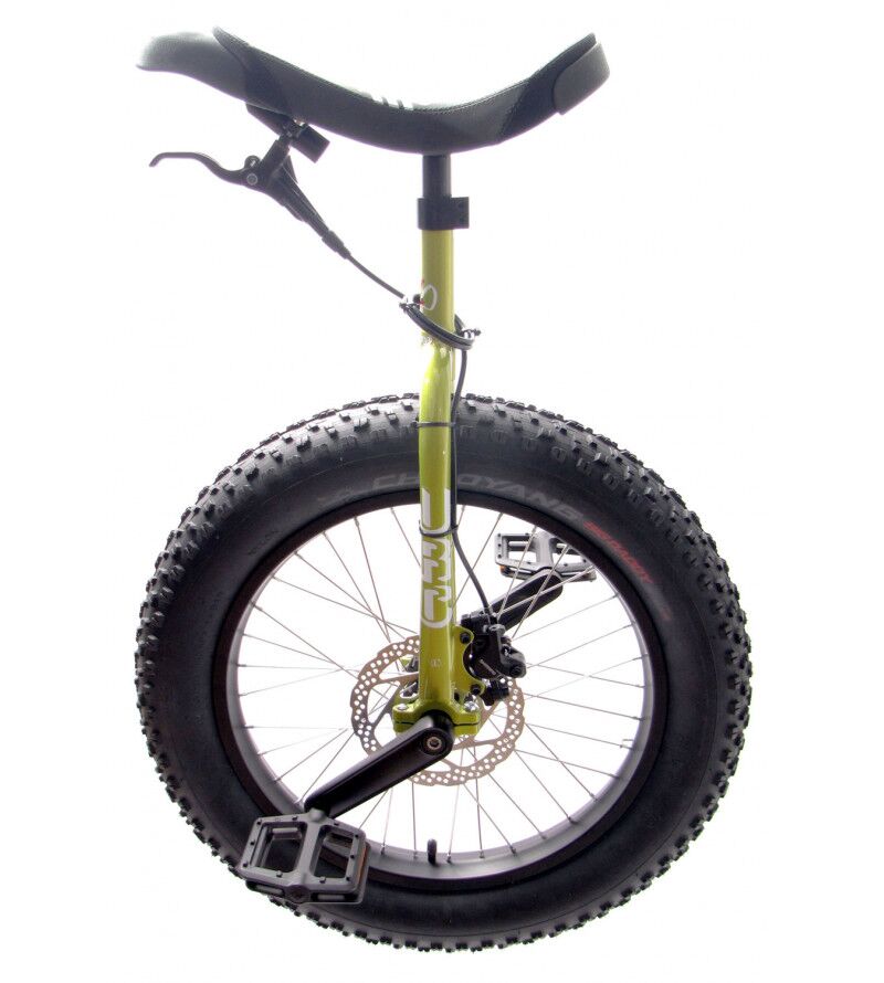 As far as I can tell this is the the old 20" Nimbus Purple monster unicycle but now with a cute , downsized Hatchet-style frame. That does however mean it has cotterless cranks rather than ISIS and no brakes nor a straightforward way to add them (though brakes on a 20", even with a fat tyre like this, is perhaps an overkill anyway ).