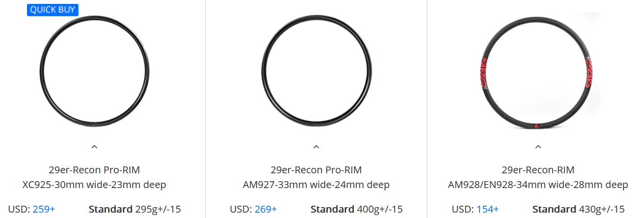 The rim I identified was the lowest and the lightest (and the cheapest). After that, between 35 and 38 mm high, it’s similar. The second one is in the “PRO” series, maybe it’s better. As far as the look is concerned, I prefer the PRO rim. ![]()