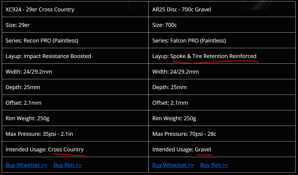 - It isn’t asymmetrical like the AR25 so spoke tension balance will be worse