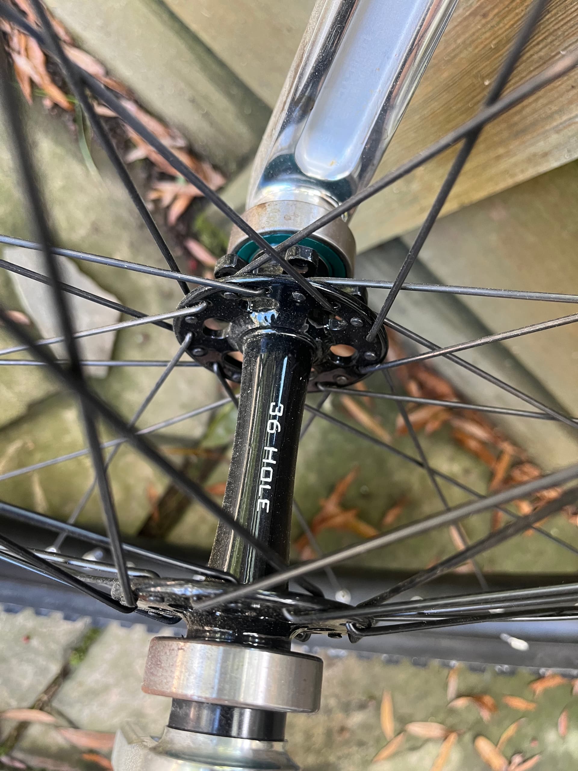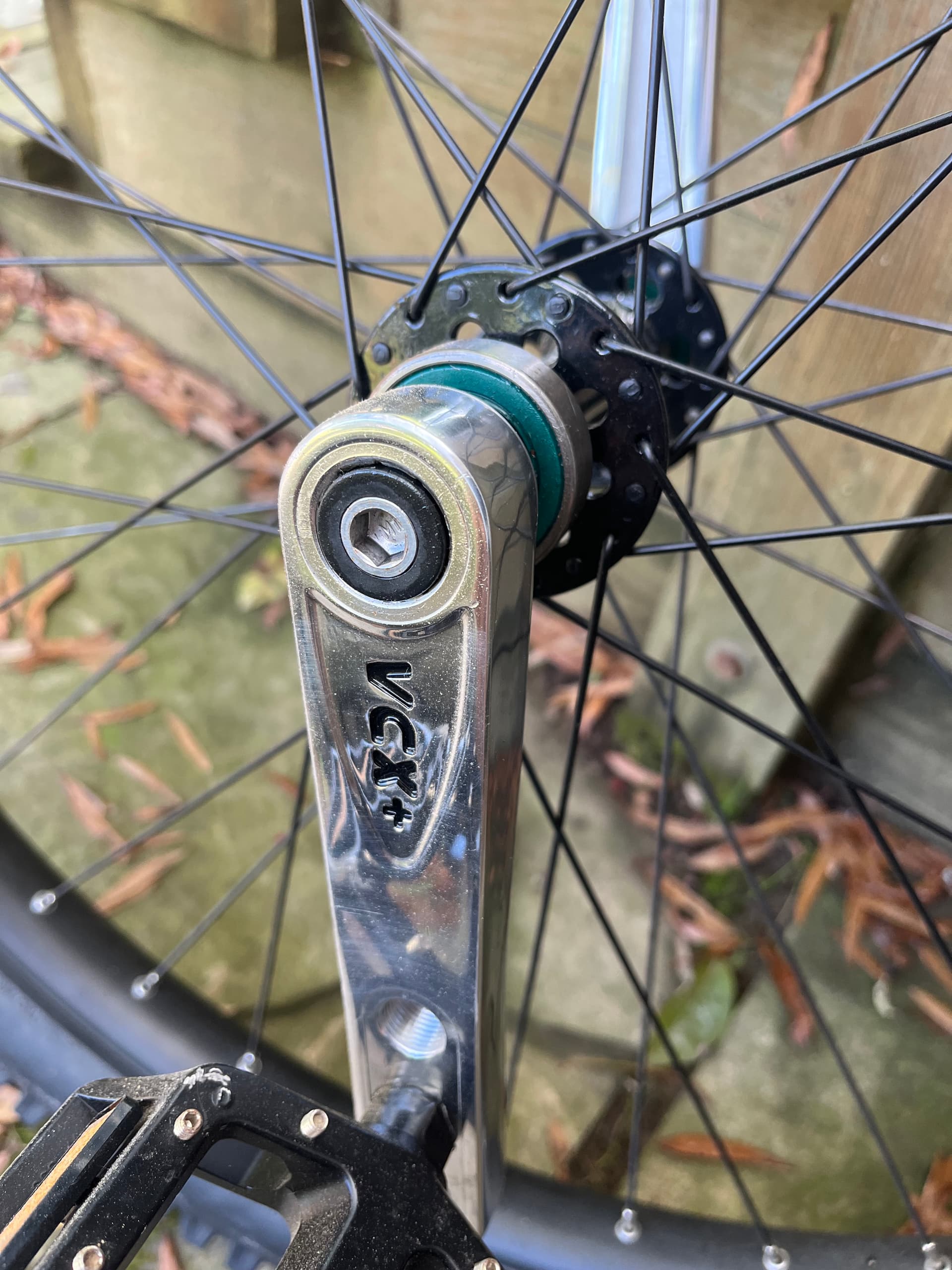 VCX+ triple hole cranks, Nimbus standard 36 hole hub, bearings, and pedals from someplace.
