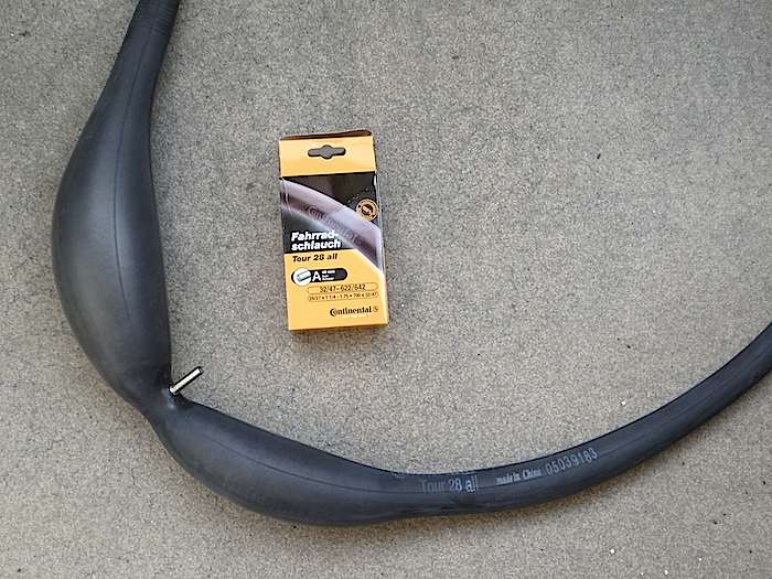 I’ve been running Schwalbe AV19 29er tubes in my Airfoil KH36 single speed for 4 years now, several centuries and thousands of miles now and I have found a couple of things that make the 29er tube work well for me. I’ve installed several of these for friends too using this technique: