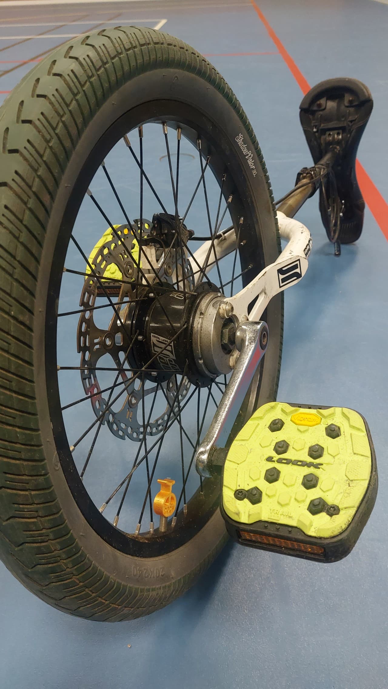 The tire is 20x2.4, I took it because I wanted a bigger wheel , because with this frame, I can’t use a bigger rim. Anyway, with a hub like that, I think 24” would have been the max rim size.