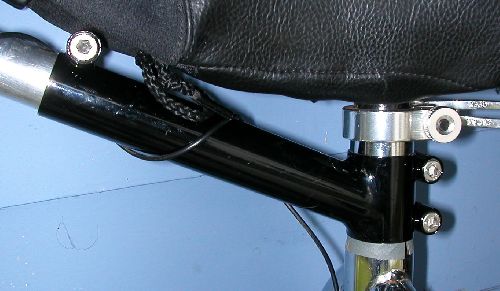 I couldn’t put one on my seatpost because my seat is way too low, so the stoker (I got the larger size) clamps onto my Radial frame. That is the smallest diameter it will clamp to. In fact I slipped in a piece of fine sandpaper to get it to hold better. The Radial’s OD of the frame is probably 29mm or so.