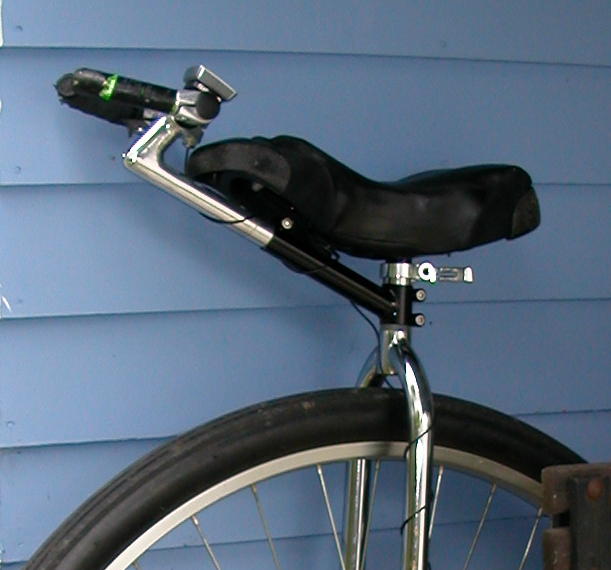 So I tried something quite like the pure John Childs approach, with a stoker stem. The problem I have is since I’m only 5’6" tall, my seat is set low and the stokers I’d seen have too much angle (One was 37 degrees and one was 45 degrees) and the “boom” part didn’t clear the front of the seat.