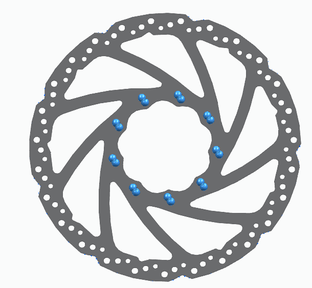 I strongly suspect the stress riser at the inner notch to be from the way I set boundary conditions, with the torque properly applied at the whole braking surface there should be less torsion through that part and less localized stresses. (I’ll try to figure out how to set the BCs better).