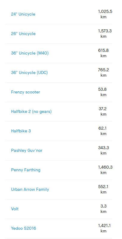 That’s some serious mileage on a penny farthing! I didn’t realize those were used like distance unis and b*ks but I guess it makes sense with a large, fast wheel. What kind of average speed is comfortable for you and what size wheel do you have?