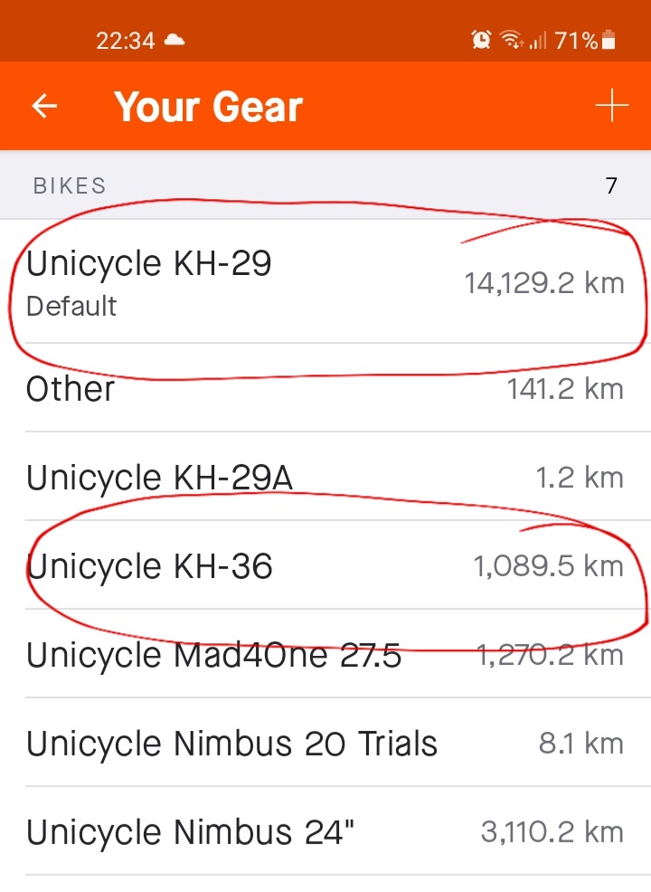 My strava stats… As you all would know, a 36er is much more effort for me to mount than any other size. (Yes, I know, rolling mount is the way)…