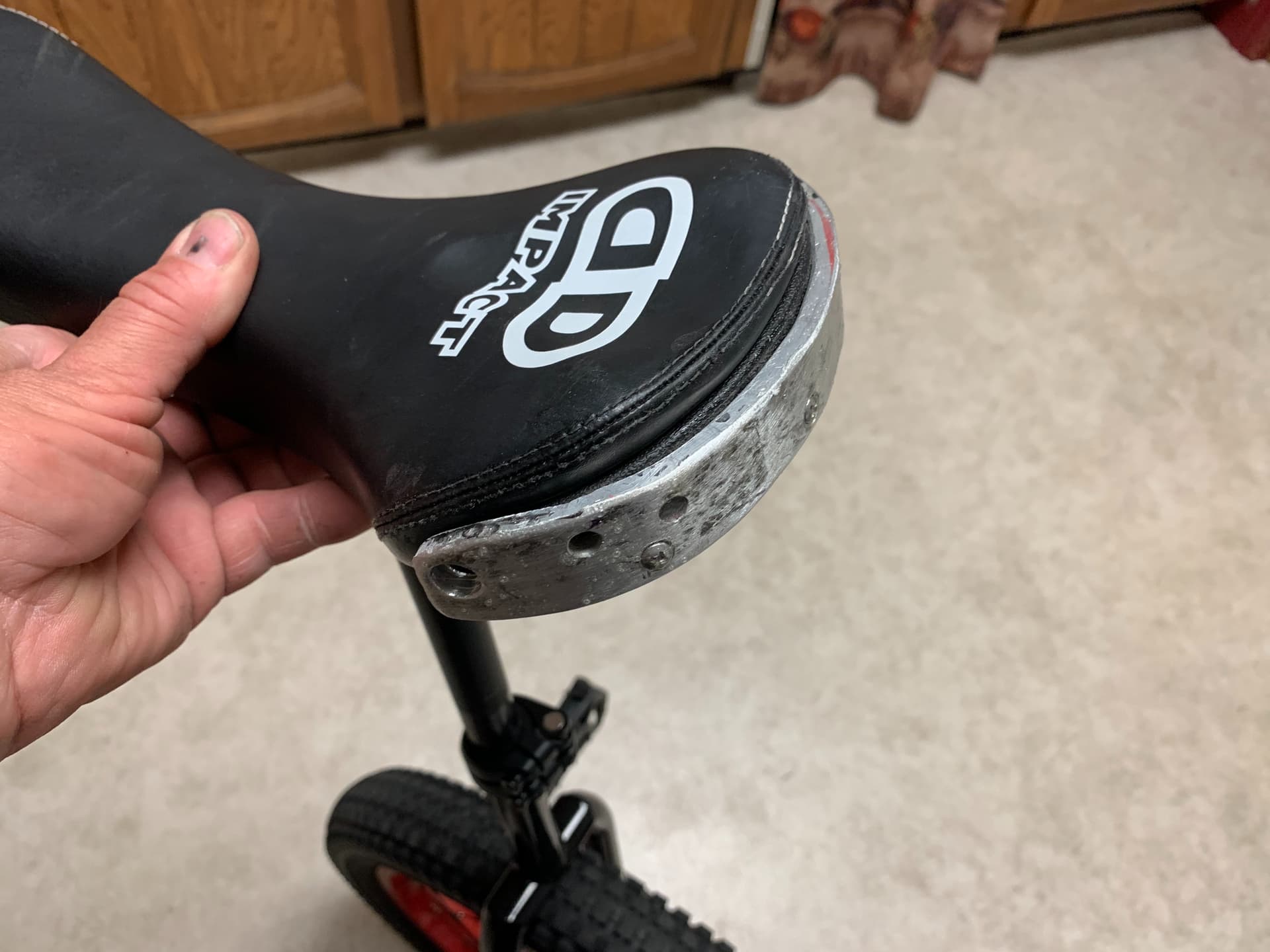 One thing I noticed was that the seats on both unicycles aren’t protected well at the back. All my crashes were wearing off the stitching due to the poor plastic bumper. I screwed on some quarter inch aluminum back there. That stuff is hard to bend.