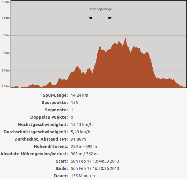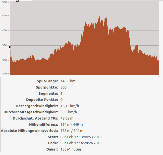So jetzt habe ich die Daten noch einmal überarbeitet, dazu habe ich die Konvertierungsfunktionen auf Gpsies.com verwendet, diese soll auch die Höhendaten korrigieren können, das Ergebnis ist schon stimmiger.