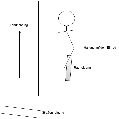 Vor einigen Wochen habe ich ja schon einmal geschrieben das ich ein Problem mit Schieflage auf dem Einrad habe, in den letzten Wochen habe ich versucht das zu ignorieren, aber heute hat es bei einer Tour schon sehr gestört. In der folgenden Skizze habe ich versucht das einmal darzustellen.