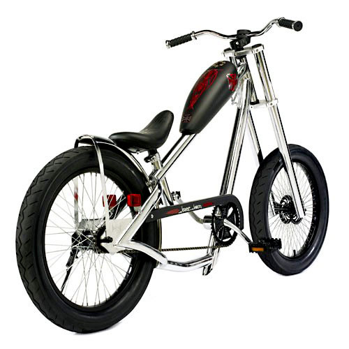 Expect to see a chopper bike from Redline sometime soonish. It looks like that bike uses the same size of rear tire as the Schwinn Stingray. Build quality of the bike also looks much better than the Wal*Mart chopper bikes (and I’m sure it will be much more expensive too).