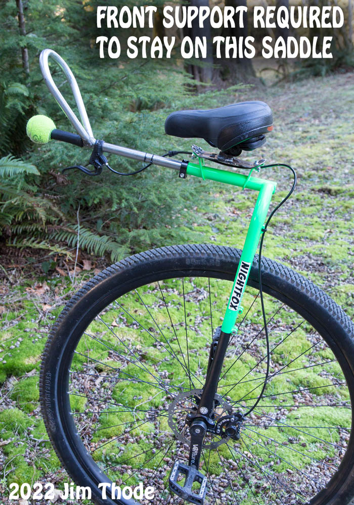 I would not attach anything to the bike rails since saddles are not designed to endure the forces unicyclists can put on their handles, and might bend.
