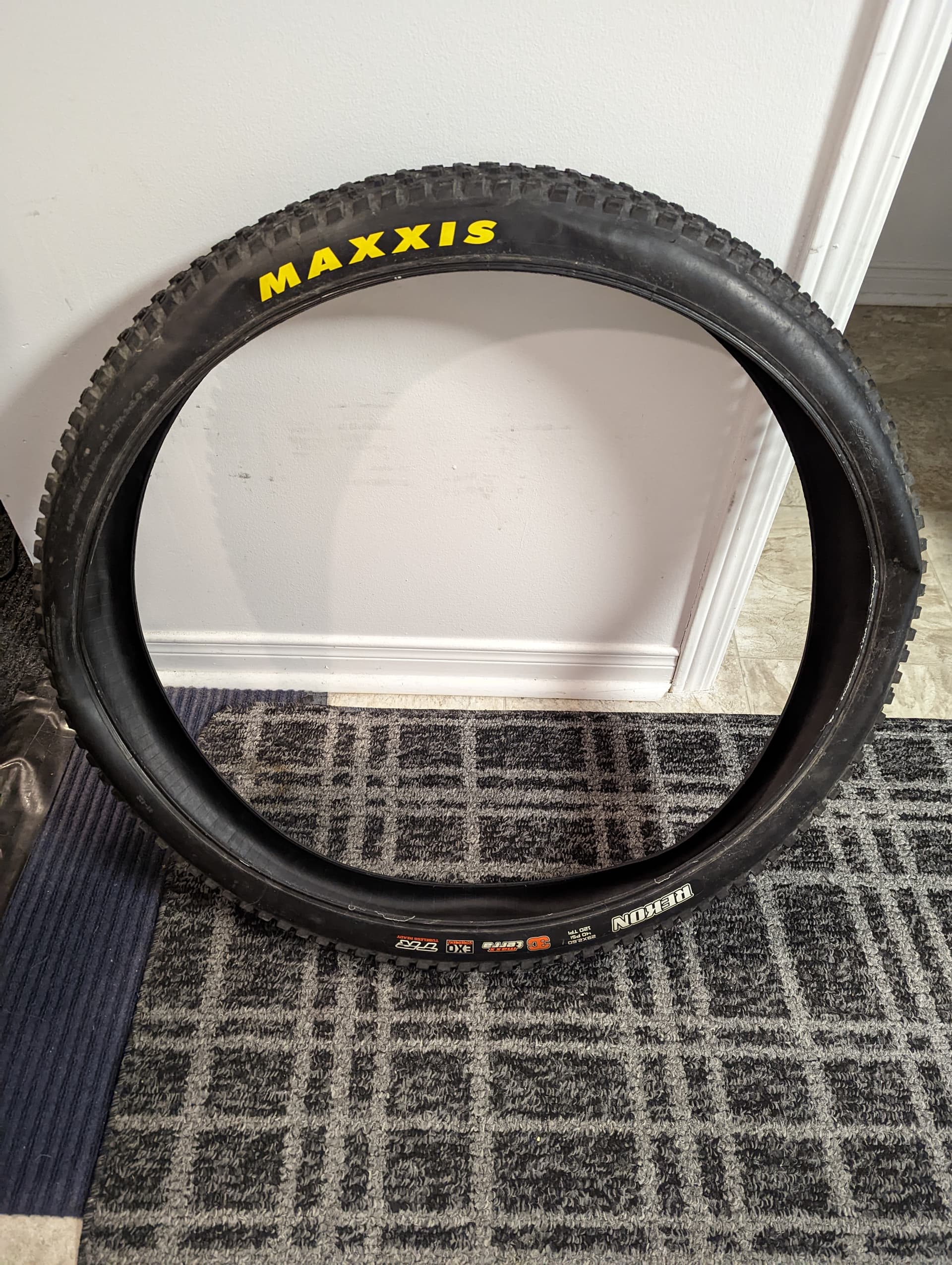 Higher end Maxxis 29 x 2.6" Rekon 120TPI tire.