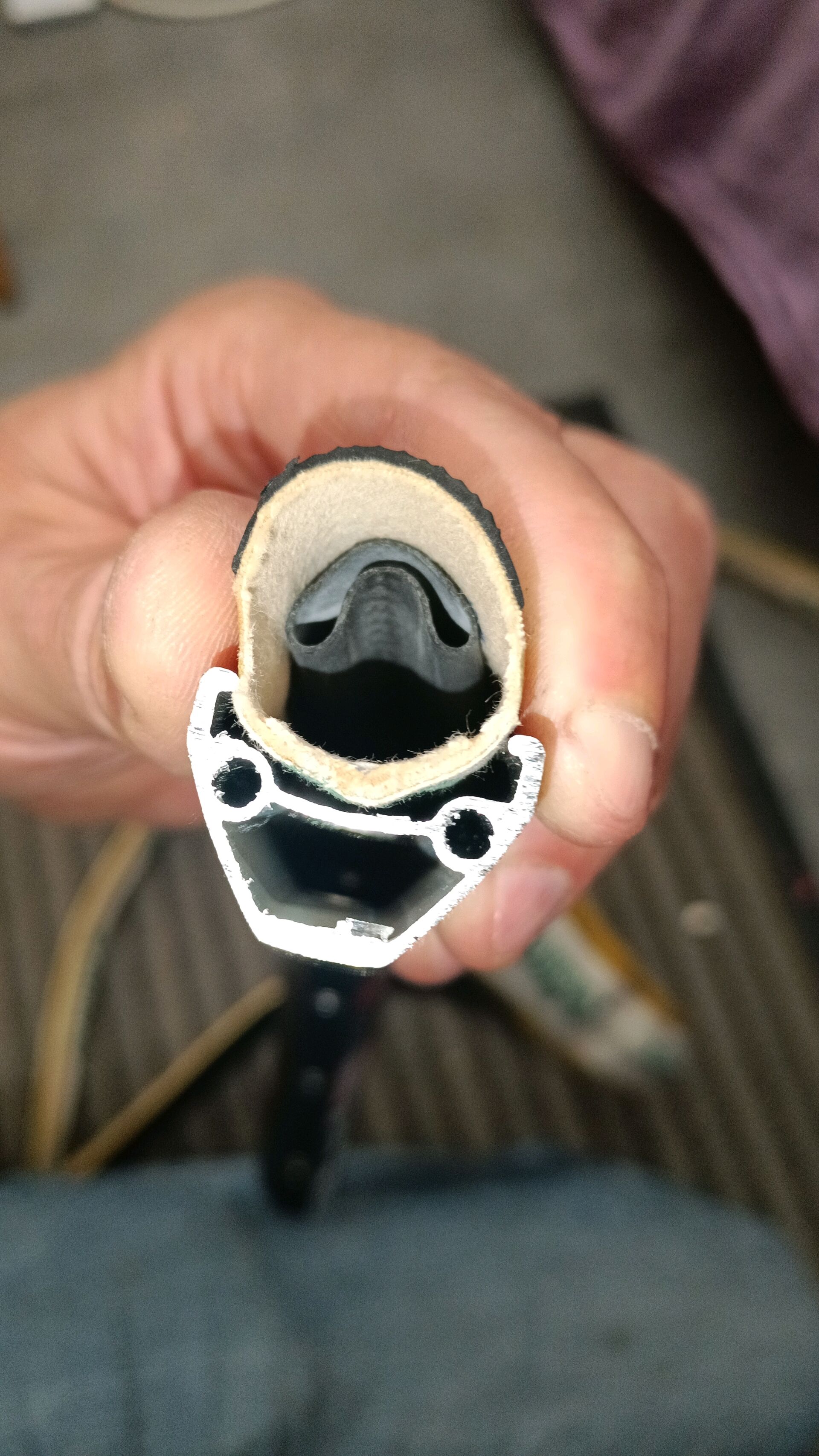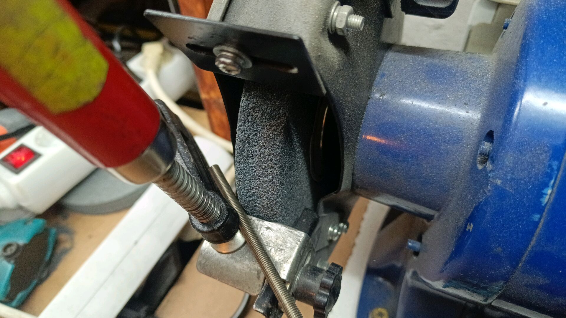 Grinding both halves simultaneously to a perfect fit and length takes much time, interrupted by tire mount tests: