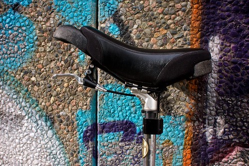 The wire goes up to the saddle, makes a U-turn at the back of the saddle (lightly held in place by a small piece of zip-tie) and ends up at the handle. The relatively tight bend does slow the cable movement somewhat, but when braking I pull extra hard on the handle anyway…