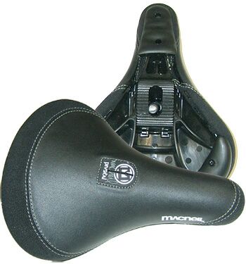 The concept JC describes is used on alot of BMX saddles, but with one bolt attachment into the center of the post, like the pic. You don’t have to use a serrated semi-circle mount, Scott Wallis’ is actually smooth and the 2 bolts provide enough clamping force.
