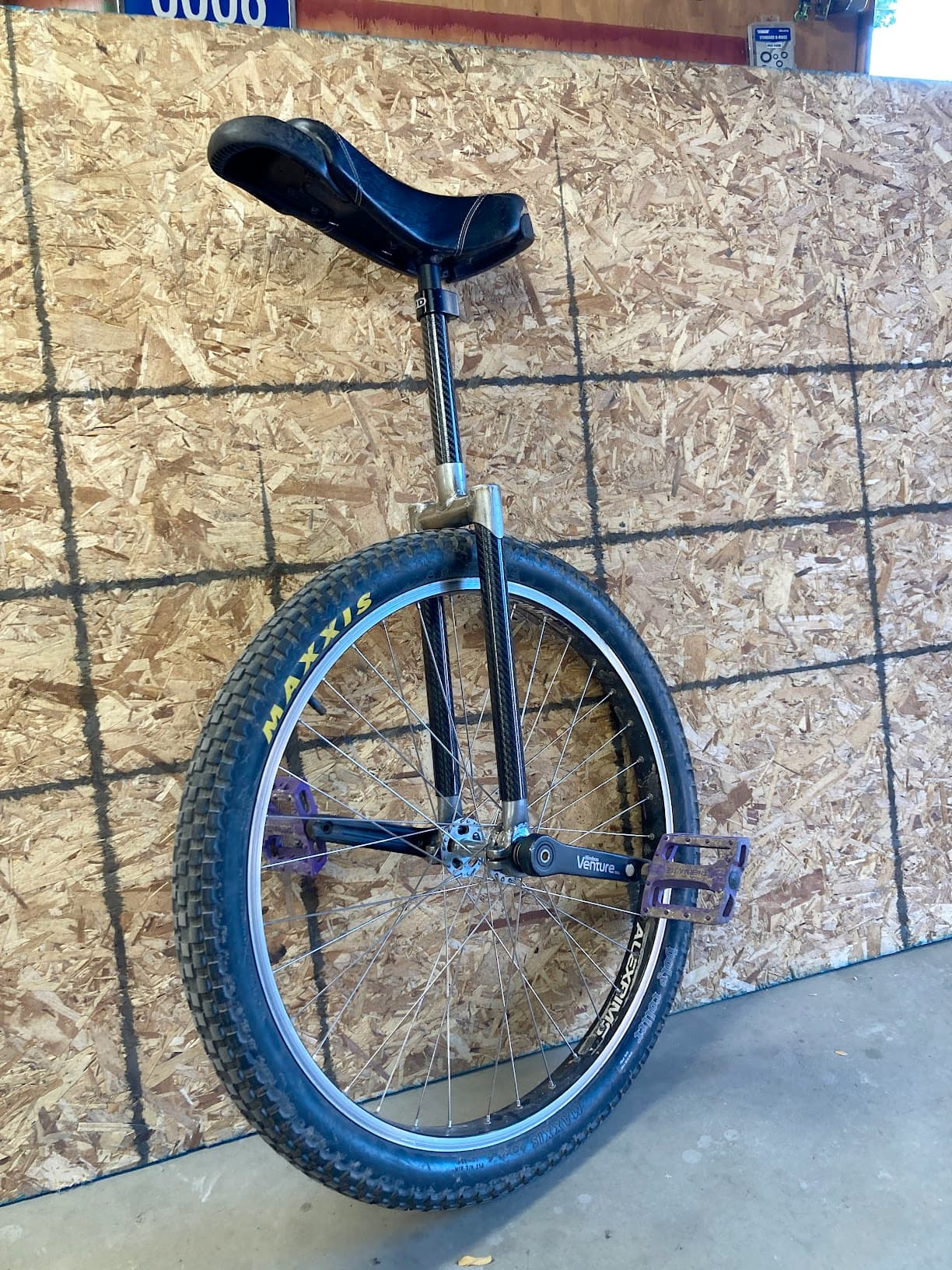 This frame design is best suited to larger wheels (32" & 36") as the carbon tubes would be the longest and the steel lugs would be relatively small. The 26" is the largest wheel I own, though, so that’s what I built it for. I could also likely reduce the length of the tubing used on the bearing caps, to take a few grams off. The longer than necessary seattube also adds some weight.