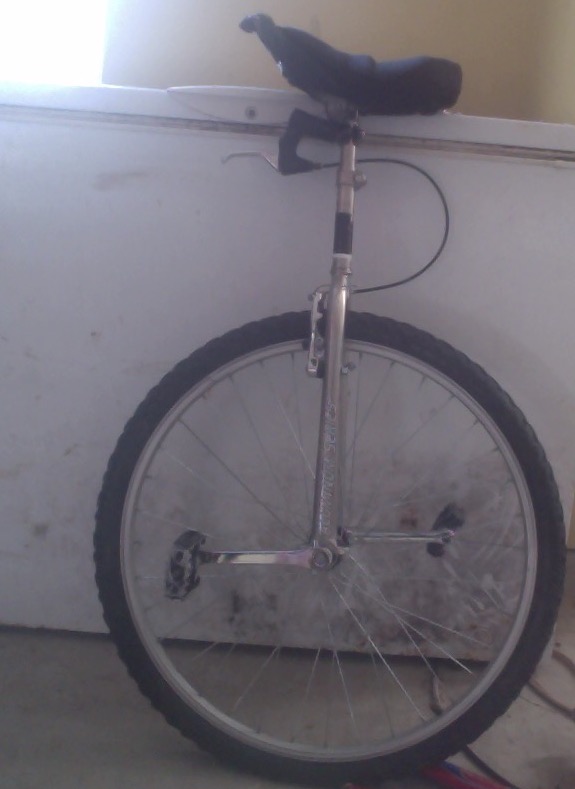 This was my first unicycle. It has been dropped, crashed, banged, ect. innumerable times, repainted twice, and sanded down twice.