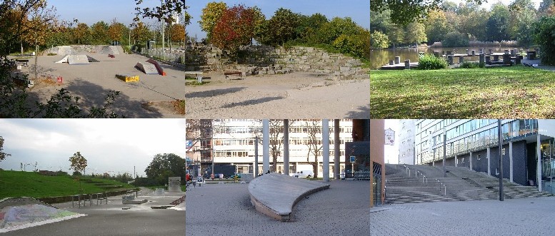 Hannah meint in Karlsruhe gibt es nicht so tolle Sachen um zu trialen. Da hat sie recht. Aber für unser Können reicht es alle mal. Ich komme z.B. im Vorwärtsfahren nur 20 cm hoch. Die Treppe rechts unten in den Bildern besteht aus 4 x 10 Stufen. Wenn ich da nur 1 x 10 Stufen hin bekomme reicht mir das schon.
