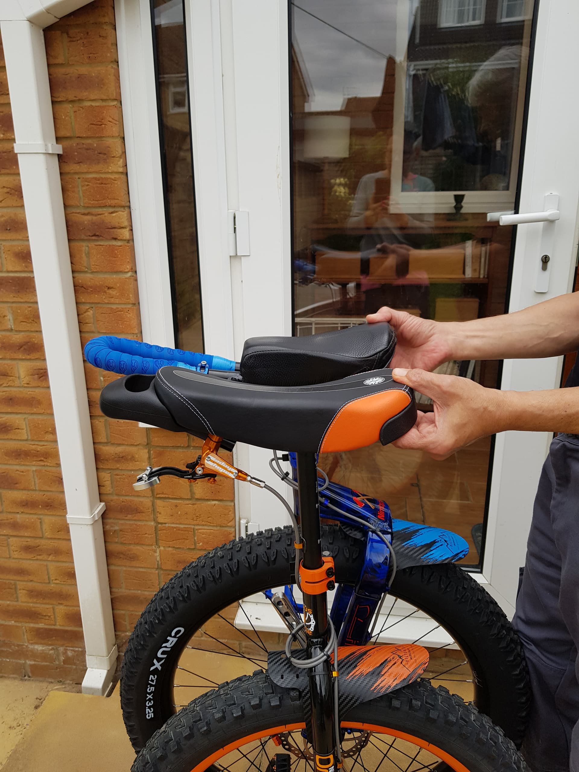 ,I dont like the red in the stickers either, it looked better without, so likley they will come off. Same for the mudguard for summer, although in winter, it is functional, I ride alot of gravel paths n trails, and its heavy grey clay around me and the crux duro tyre picks up the clay, the wrong sized stones and debris for a pass tiime. At the moment the mudguard is holding the new brake hose down until it holds its shape ,and stays out of the way.