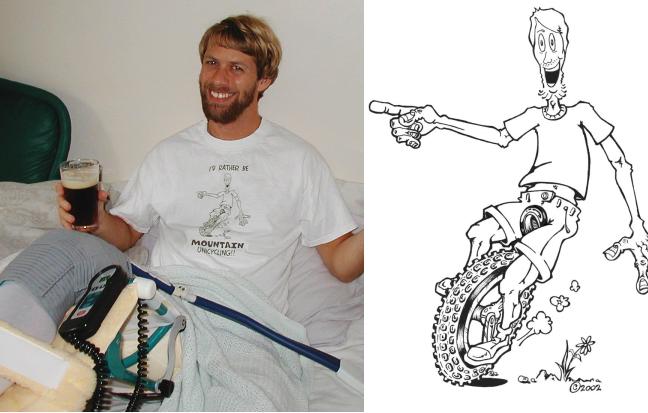 I’m wearing my “I’d Rather Be Mountain Unicycling” t-shirt in this lovely photo. I quit taking my pain pills in favor of a more refreshing pain med - fresh beer from my kegerator. Yum Yum!