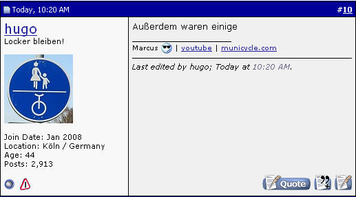 Jetzt bin ich echt platt. Bei mir steht das da und zwar von hugo um 10:20 Uhr. Wenn ich bei seinem Posting allerdings auf Quote drücke kommt was anderes: