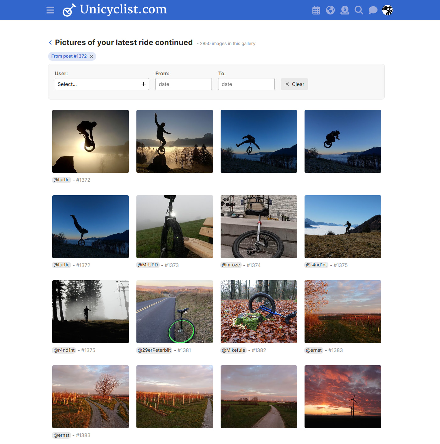 There’s also a gallery button below each post. Clicking this button opens the gallery, but the images start from this post.