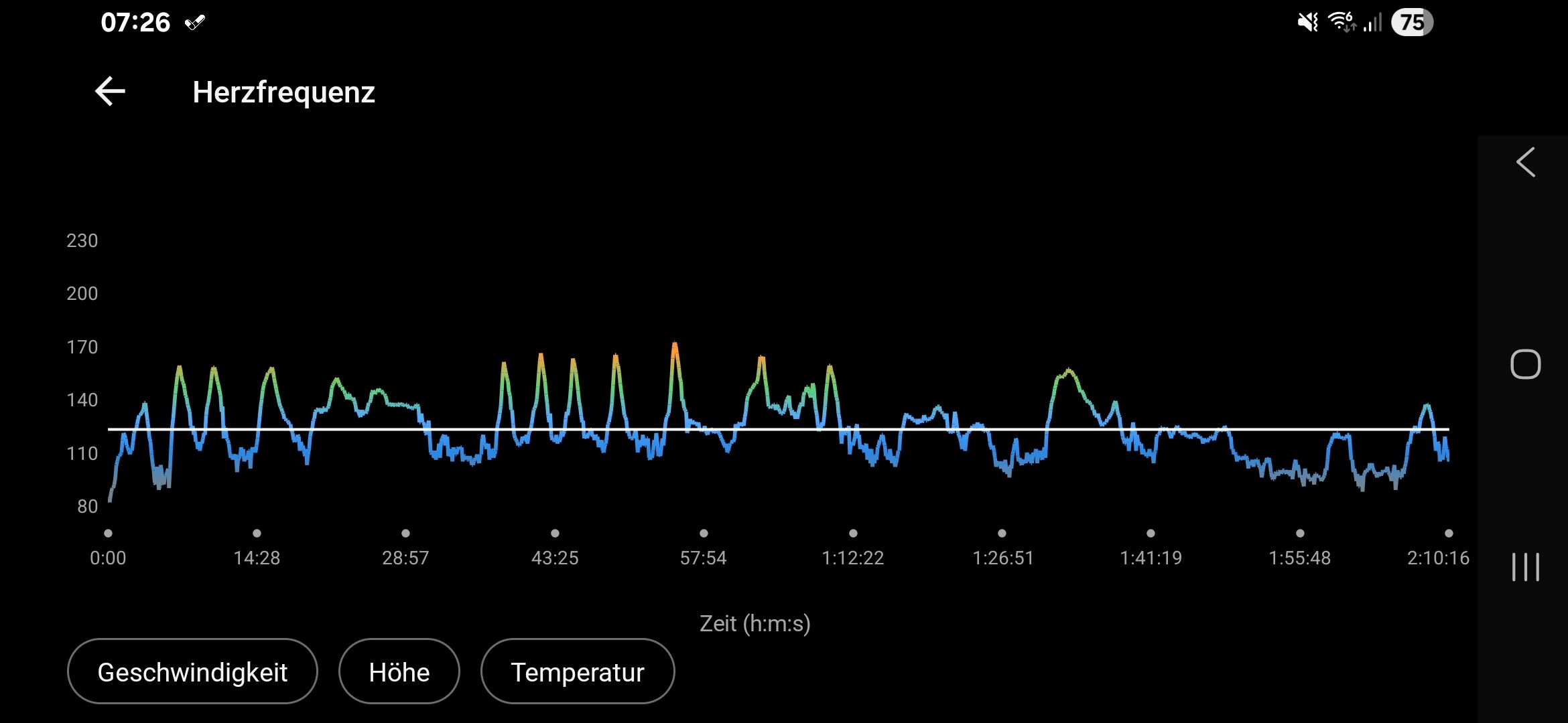 Versuche jetzt mit dem 27er im Gelände bergauf fahren zu lernen. Das wird mich wohl noch beschäftigen. Stehend ist unglaublich anstrengend, so dass ich da nicht allzu viel in einer Session machen kann. Die Herzfrequenz Kurve sieht dann wie unten aus .