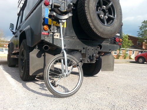 My last few sessions have been ridden wearing long trousers and shin/knee guards over the top. I’ve realised that this is a bit impractical as the guards clamp your trousers to your legs and you can’t bend your knees the first time you get in the saddle! Went and bought running/cycling shorts after work then went for a 25 minute session on the Unicycle. How is one supposed to keep ones nabbers from being crushed I wonder? I wish I could find underwear that kept things out of the way. Difficult to make adjustments too with something akin to welding gloves on