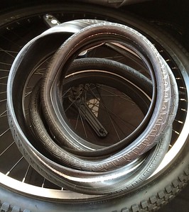 I found Sheldon Brown’s video on folding a tire. I tried this with an old 28" x 2" wire bead Big Apple tire and I think it’s too fat. Is it ok to fold it as a figure 8? I need to get it in a box that’s 26" x 26" x 10" along with my wheel and other items so I would like to get it as small as possible. Any one successfully do this? Maybe I should switch to a Marathon which is a folding bead tire?