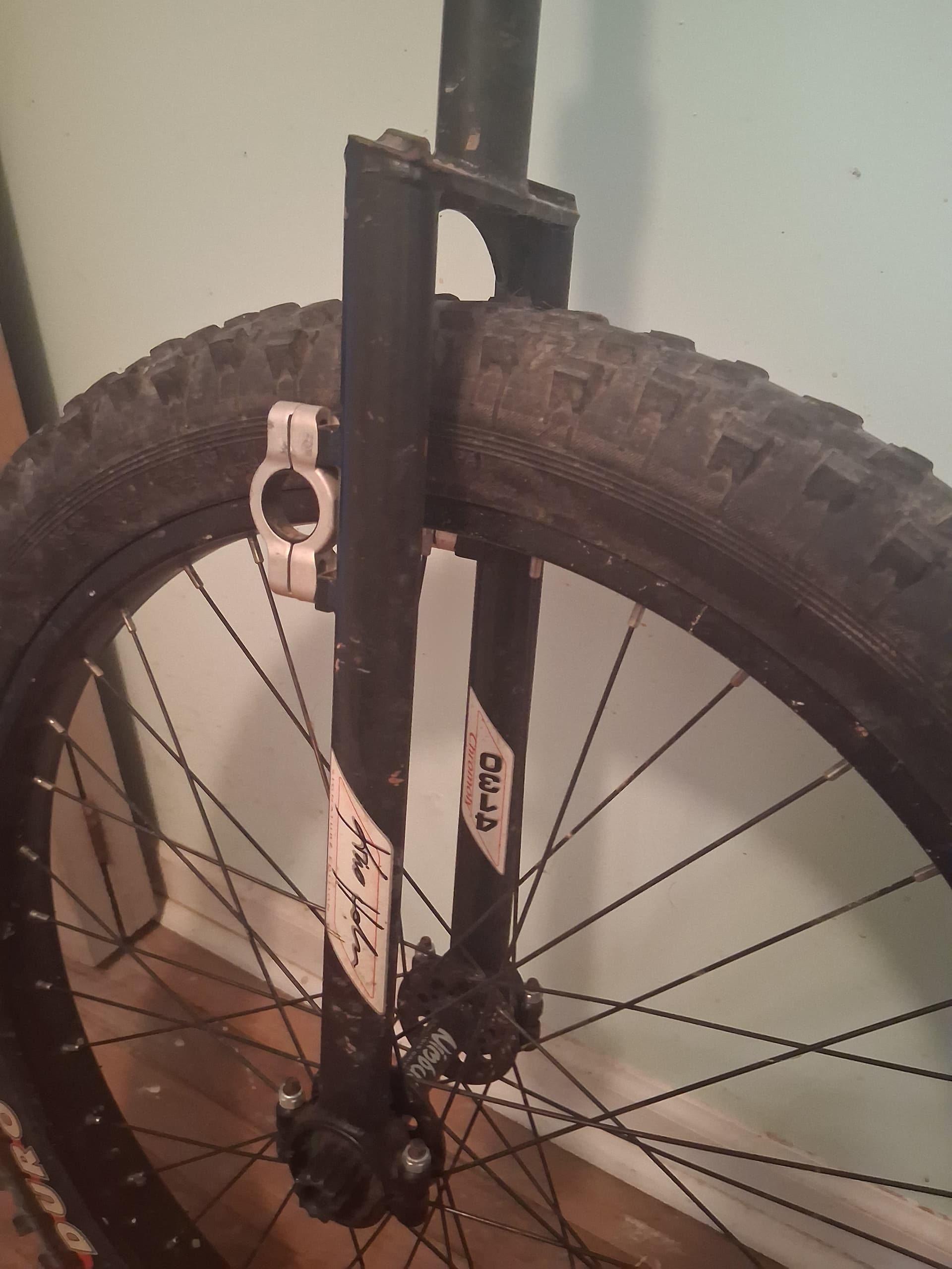 The KH 24" Muni is an older model with the old style black KH Frame. Again, I don’t know the exact date. This one does not include cranks, but pedals possibly included if they’re still available after the purchase of the KH Trials. Not sure of the saddle name, but it’s the KH Saddle with removable cover and gap along the center for comfort. The wheel is true and holds air just fine, plenty of tread left. Same as the trials, obvious scratches and wear from regular use on the saddle and frame. Could probably use a tune up, bearing lube etc. but it rolls and works fine as is.