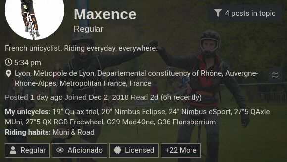 Iāve put my opinion on the idea of a built in translate function out there before, personally Iām afraid it might turn the different language sections into āthe same people as on the English speaking section, but auto translated to another languageā. With a lot of technical jargon (as a discussions about unicycles tends to have), auto translation, as good as it has become, still sucks.