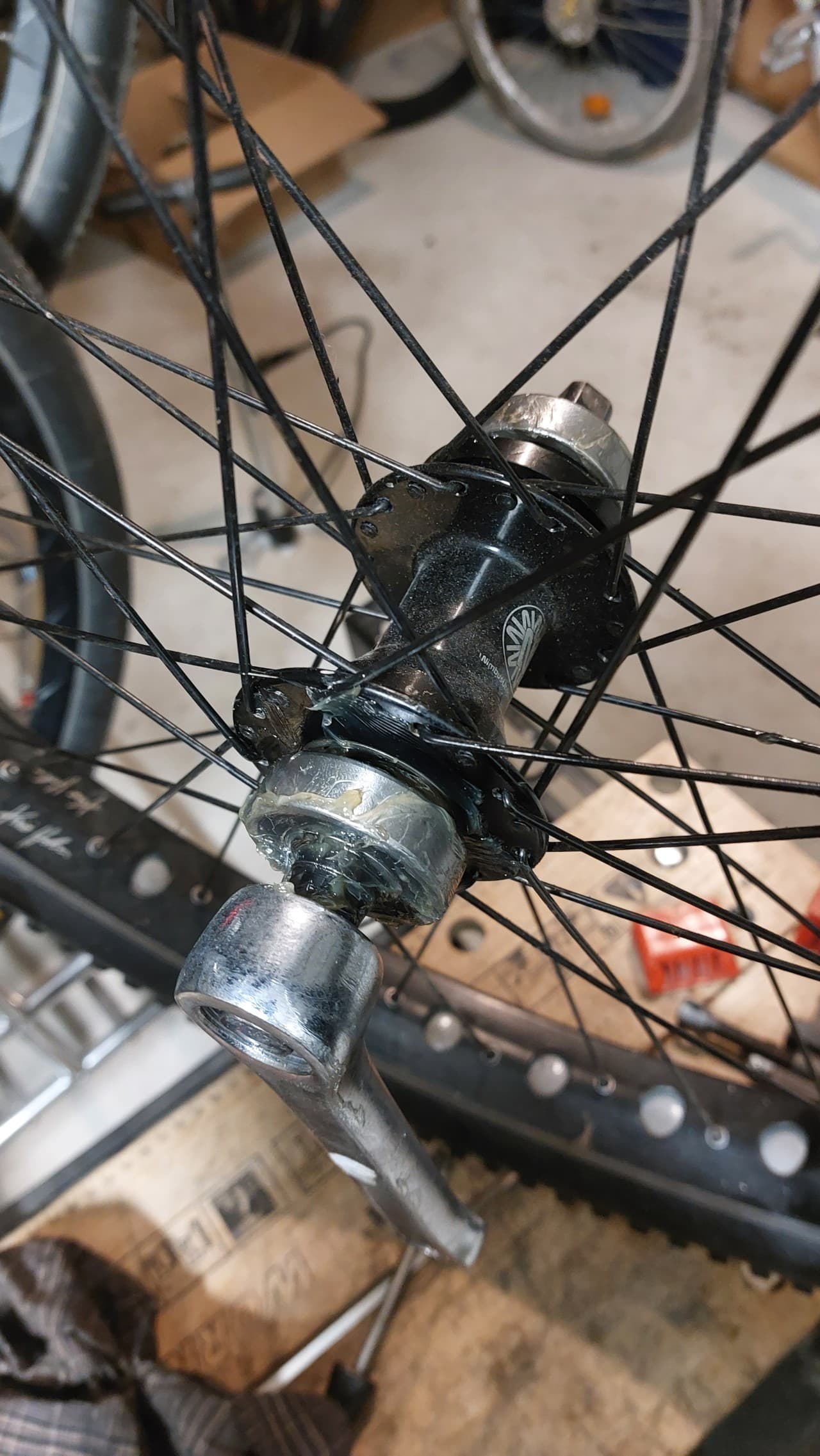 Okay! That’s it! I’ve changed the pawls, the spring and greased the hub thoroughly.