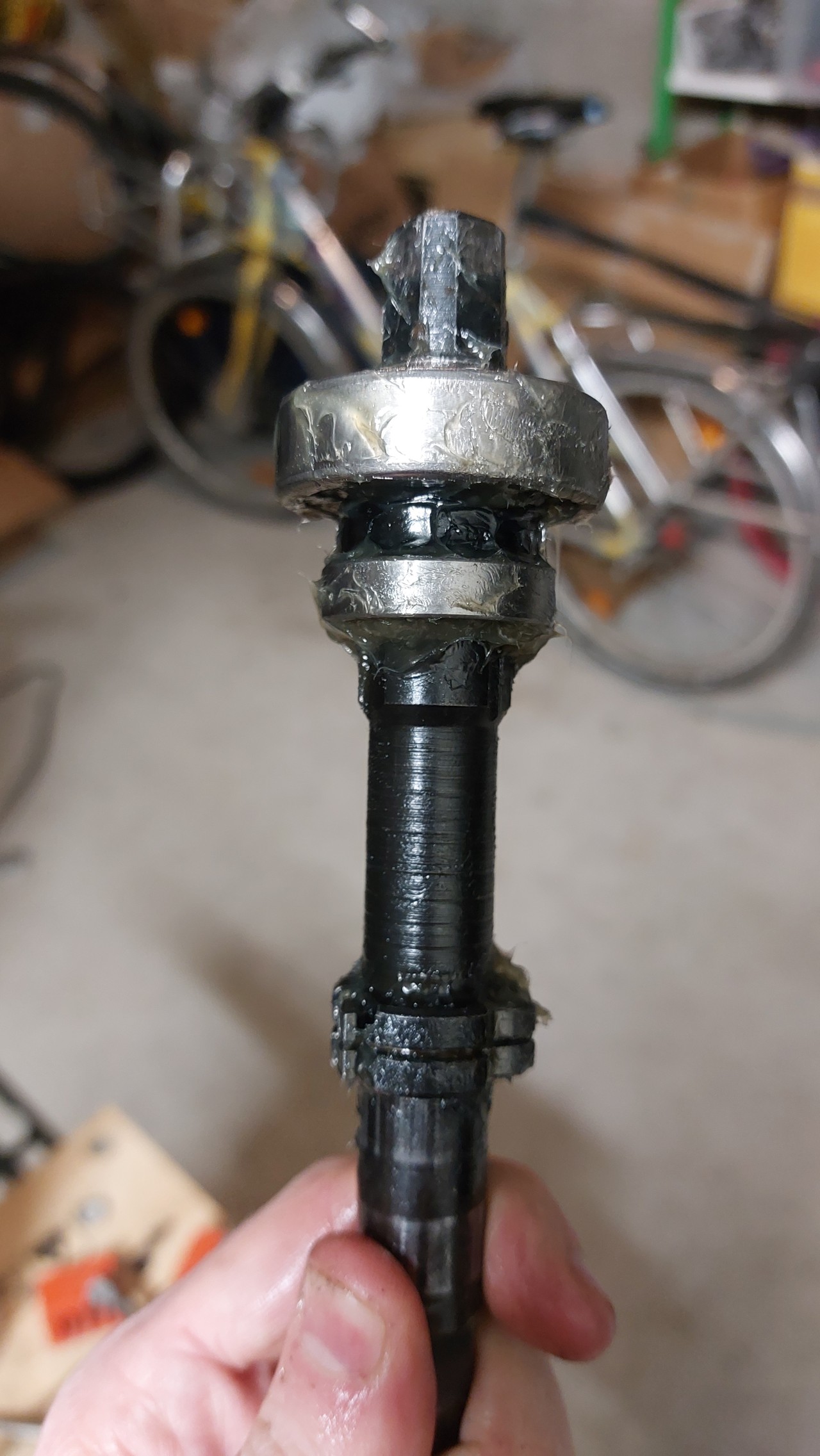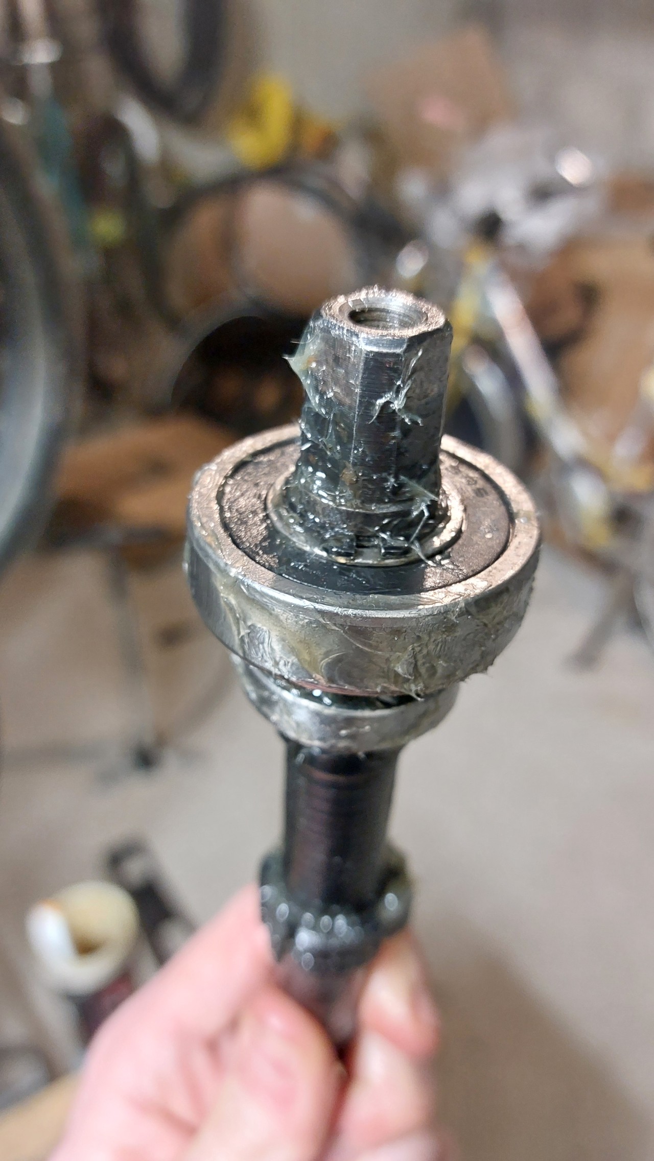 I didn’t go easy on the grease. In fact, I got it all over me, including my phone… but it makes assembly much easier, and it’s not bad for bearings, which don’t have an unlimited lifespan.