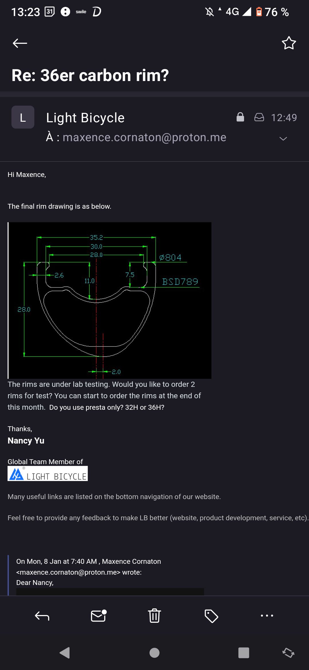 Which new version of the Nextie rim are you talking about? The drawing I have sent is the new LightBicycle rim. Have I missed a new version of the Nextie rim? ![]()