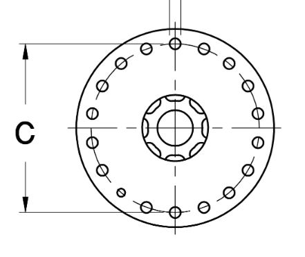 The size of imaginary circle passing through all spoke holes on a hub flange (30 to 120mm).