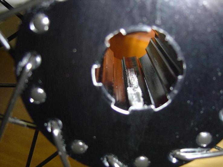 The shaft slides easily (with lots of play) into the hub until reaching the welding marks. On the inside of the hub on the area that touches the welding the aluminium is all scratched.