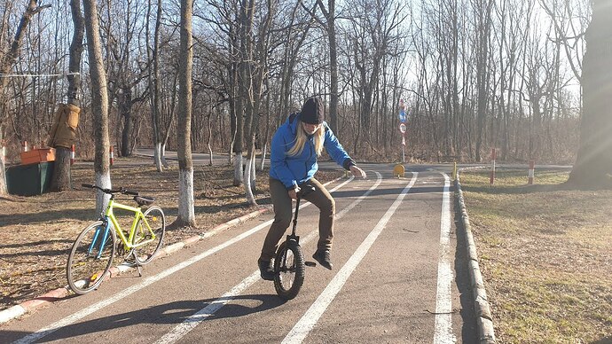 Like I said earlier, the advantage of trying to get into SIF while riding is in my opinion, that you get a feeling for the behaviour of the uni and how to counteract, because the transition is gradual. This gives you time to adapt. Maybe a good start would be to stand up while riding and grab the seat, but at the center instead of the front. When you feel somewhat confident just move that seat forward and continue riding. Oh, and make sure to lower that seat beforehand! ![]()
