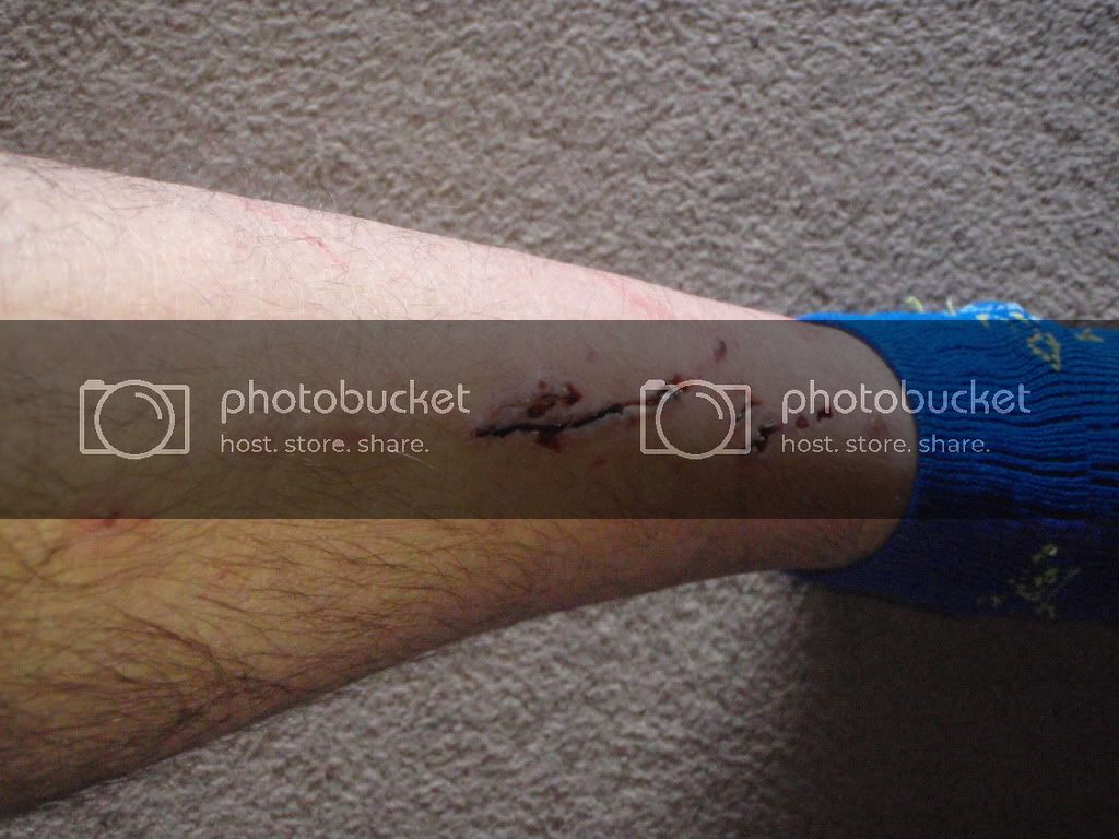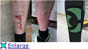 Here is my leg without shin guards and with Cope shin guard (I also use IXS shin/knee guards and they are deeply scratched as well):