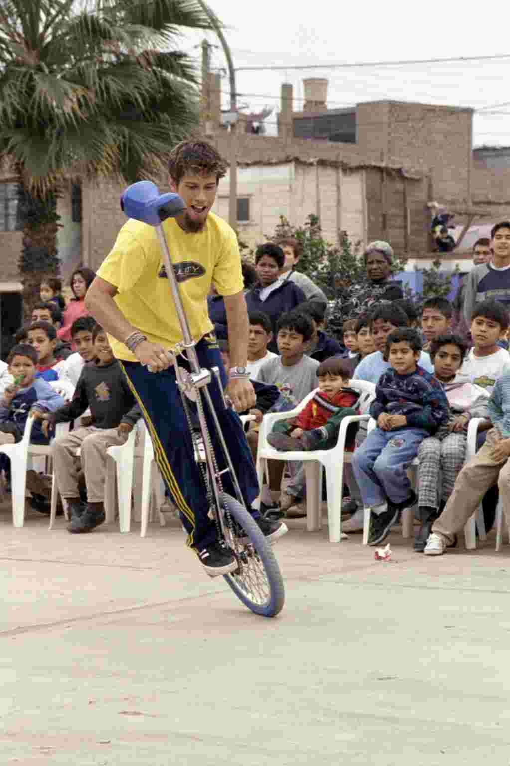 *Mr. Foss does this trick with one hand on the frame or seat while the other hand does the pedaling.