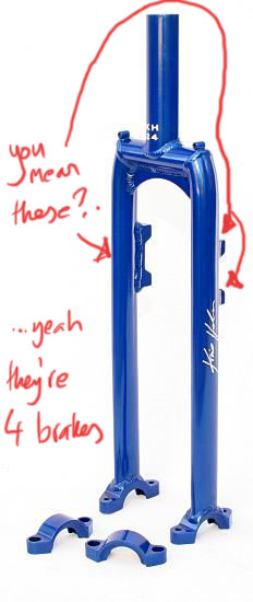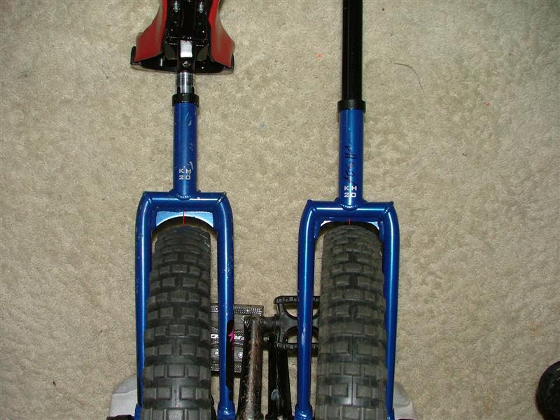 The spring/summer KH20 had a 45mm height above the tire; Fall 2005 has a 35mm height above the tire. Spring 2006 is currently spec’d as 35mm above the tire, but with a different gusset under the crown to increase tire clearance at this height.