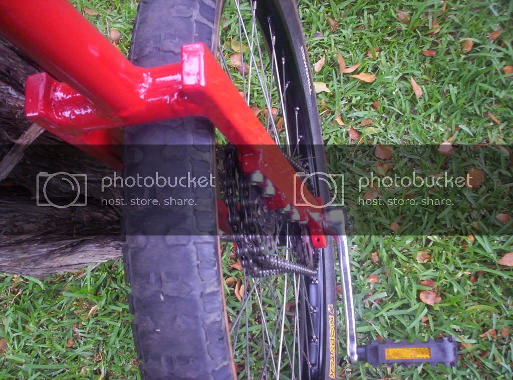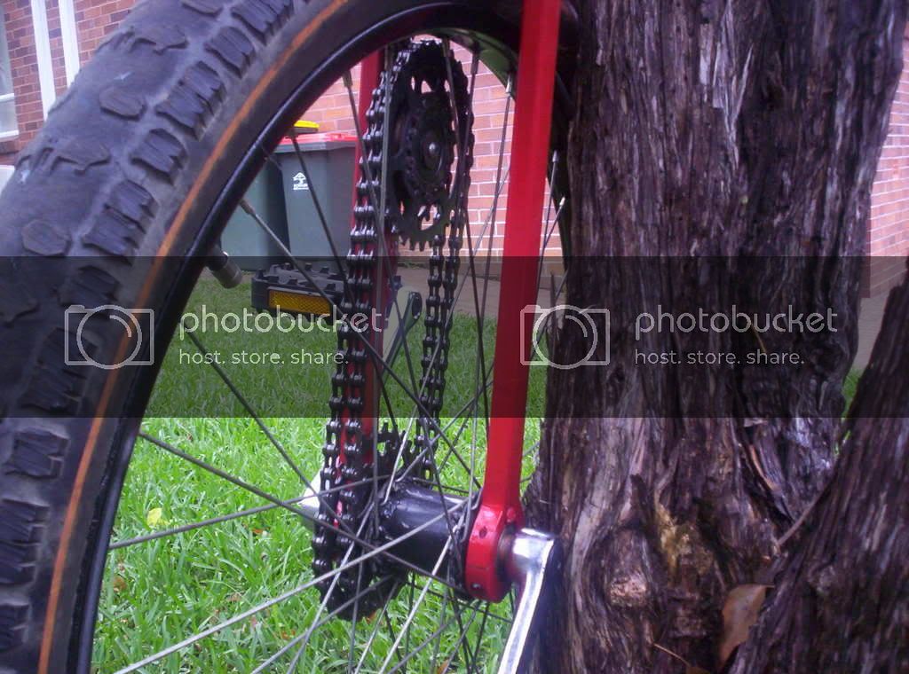 It looks really nice, did you weld a sprocket to your axle? also, could you get a picture from the front? I’d like to see how you managed to get 2 chains on 1 side of the frame