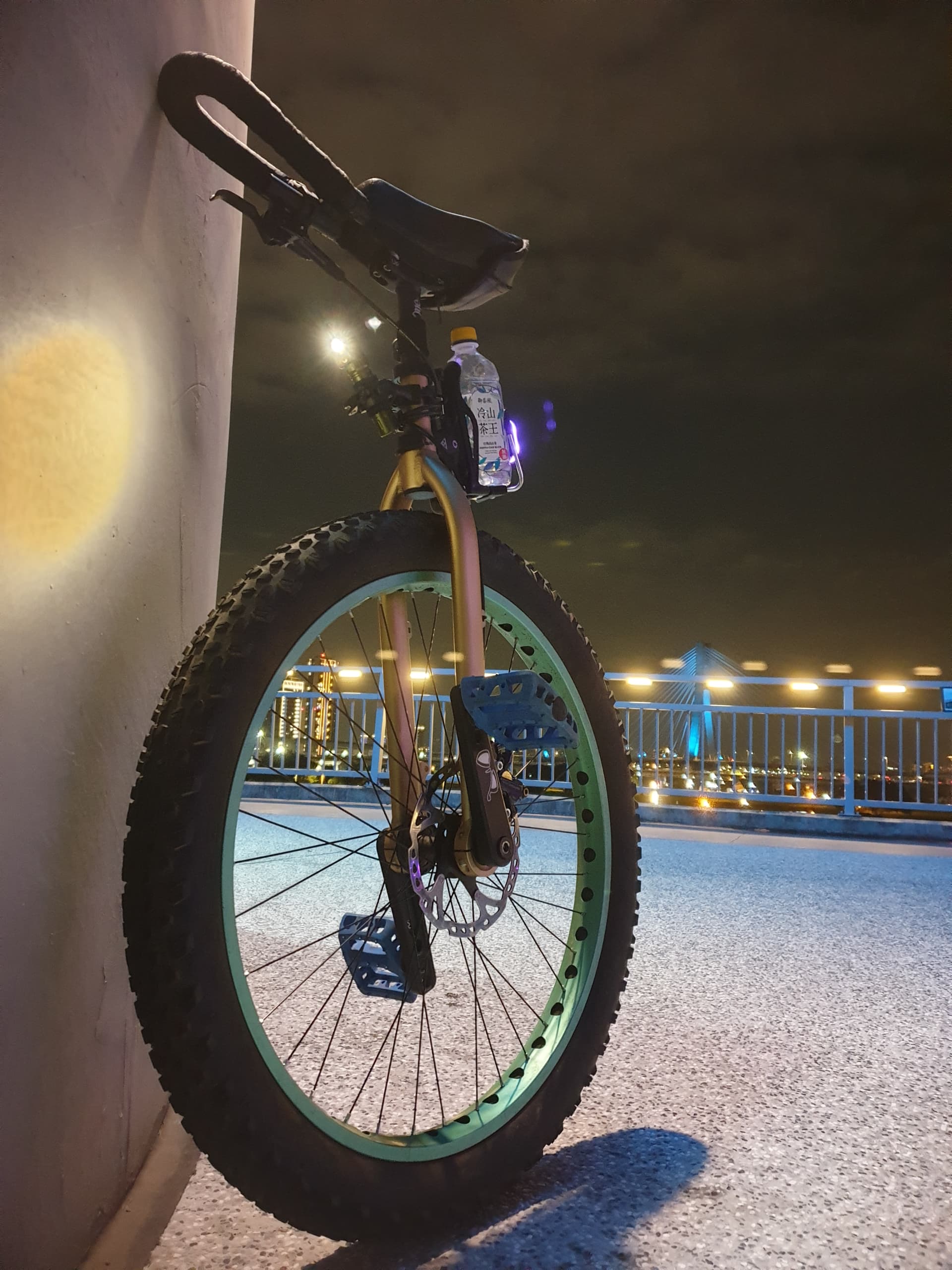 I put a bottle holder on the frame before. But now I prefer it simpler, so I don’t have to worry when I want to hop.