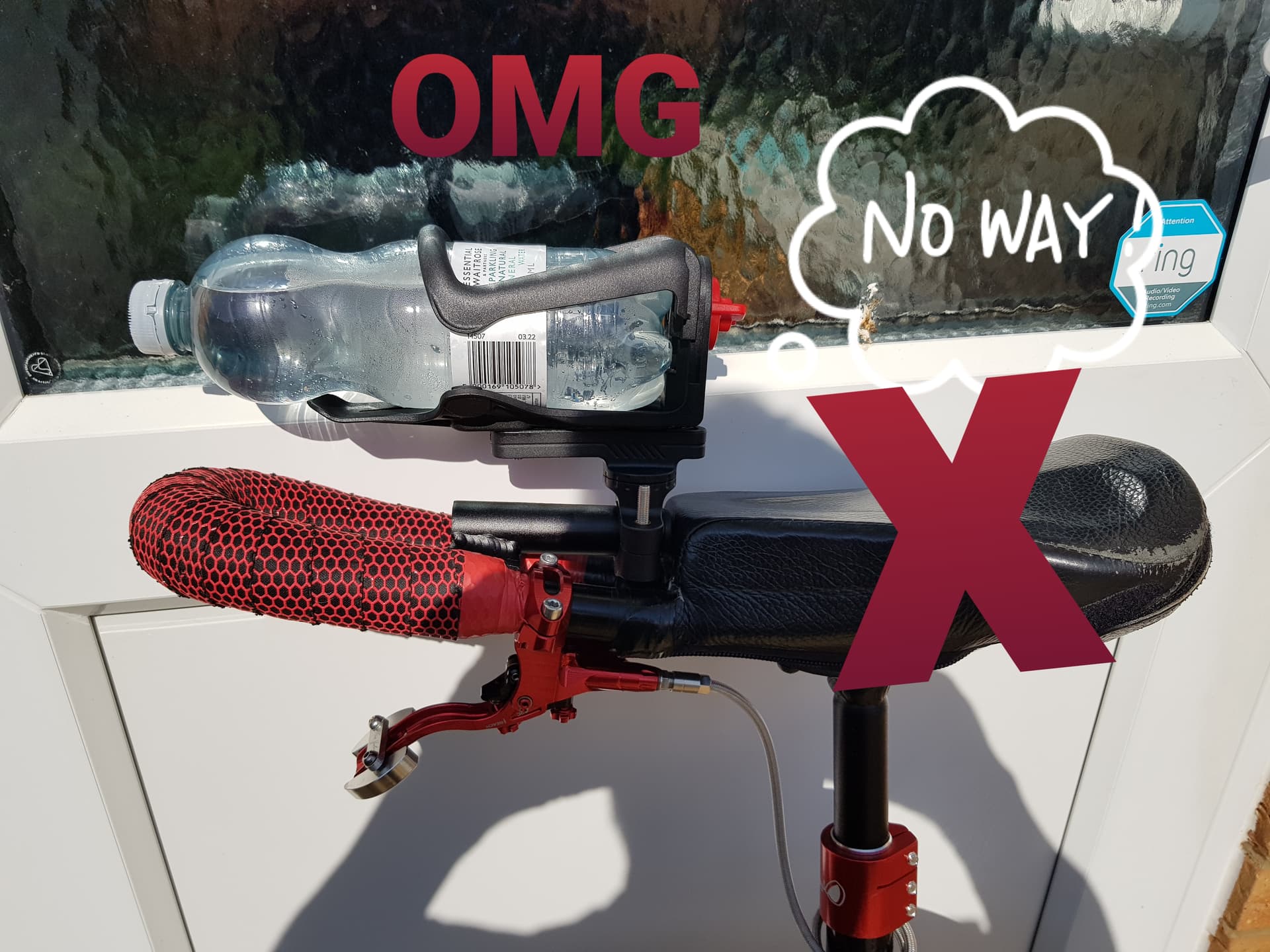 @Uni2ONE2 @ManiusTerentiusPullus @Syoten Can you mount a water bottle on the M40 size M handle Saddle? Eeerm yes you can, bars, brake and water bottle are all accessable, but its not rideable, I am afraid. So a big no no. Plus prototype 1 looks like a water bottle c–k rocket, when your sitting on the saddle, gonna get plenty of looks thats for sure ![]()
