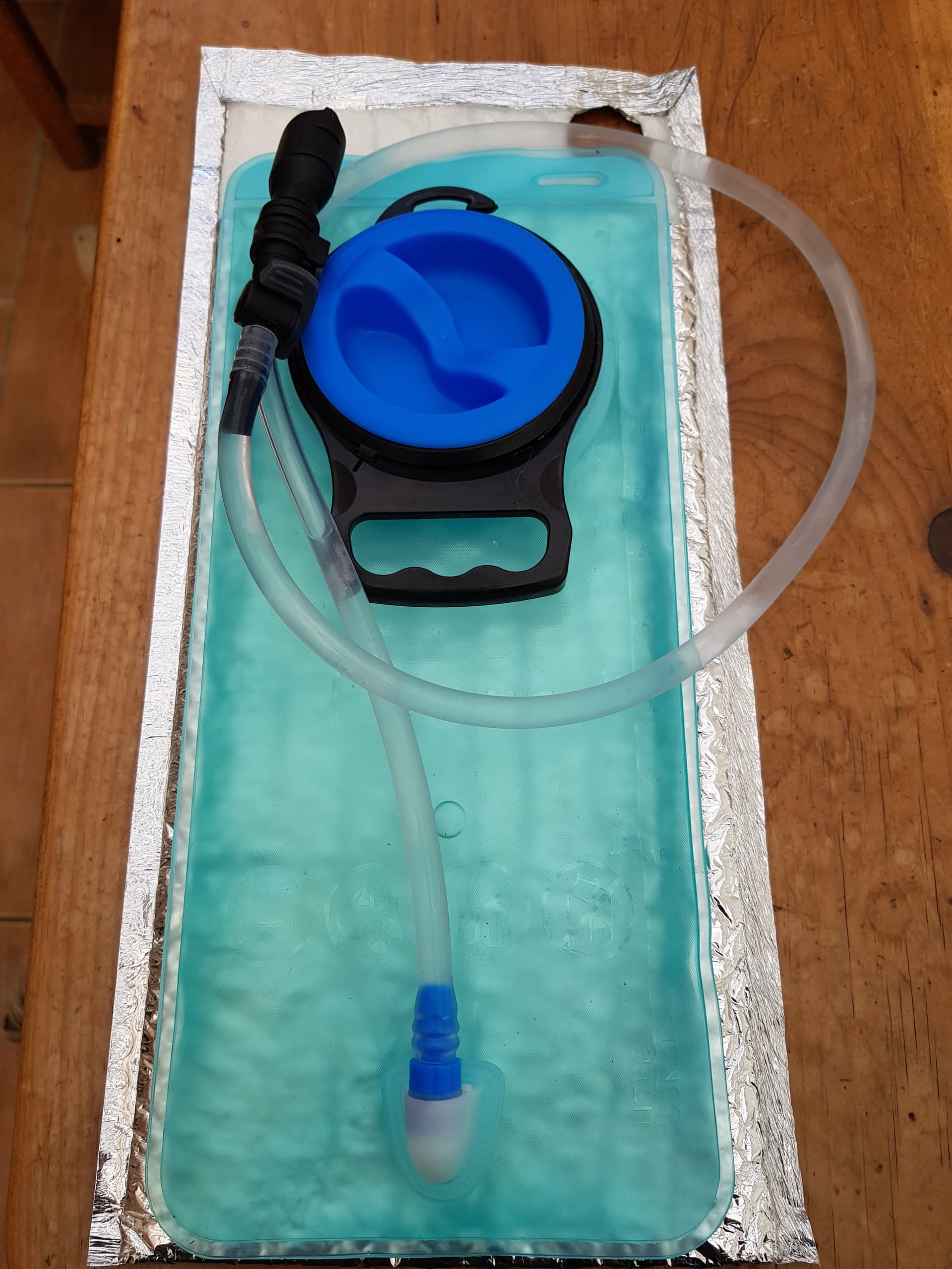 why not fill the inner tube with water and connect a little tap to the valve. No need for extra bottles that just fall off when you UPD or water that sloshes in ur backpack ![]()