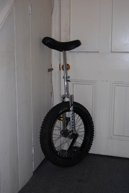 I don’t know whether he still has it or has swapped all the parts by now, but for a free unicycle you can’t really complain.