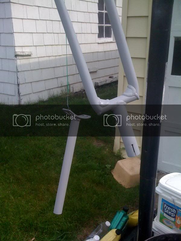 Step 4: Primer time! That’s right folks, It’s time to go buy primer. I find lacquer paint is the way to go, as you can buff it without it dulling.(unlike enamel) So, if you’re going to buy lacquer paint, you might as well stay consistent. So I bought some lacquer primer. It’s about $3.00 a can from any wal-mart. Remember to wipe down the unicycle frame before applying the primer.