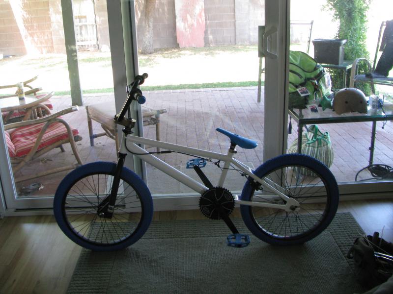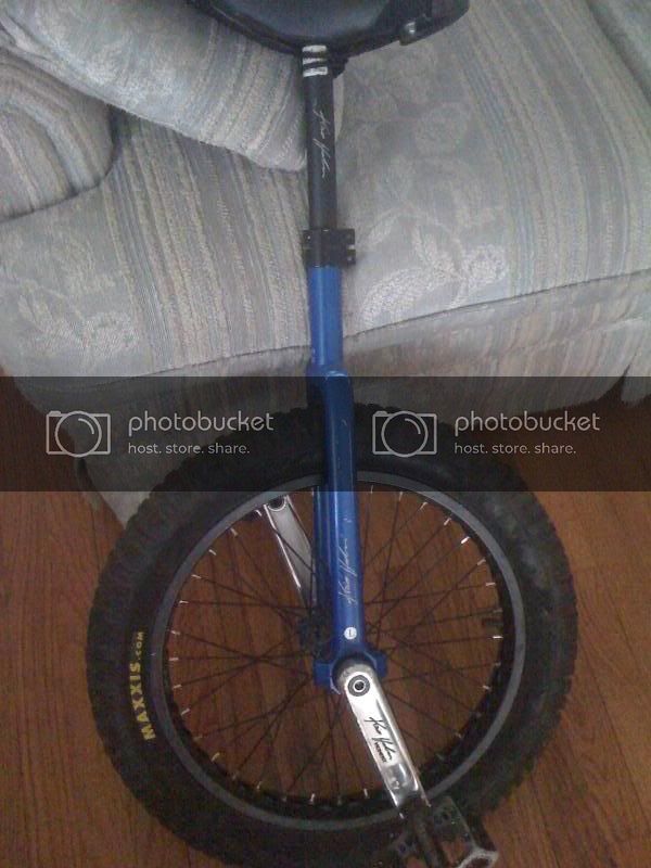 A Kh20 unicycle, with a special paint that changes from blue to red as the sun reflects off of it different. My collar is a silver hammered paint and my seat post is flat black. I DO NOT recommend you paint your seat post. It will get scratched when you adjust it.